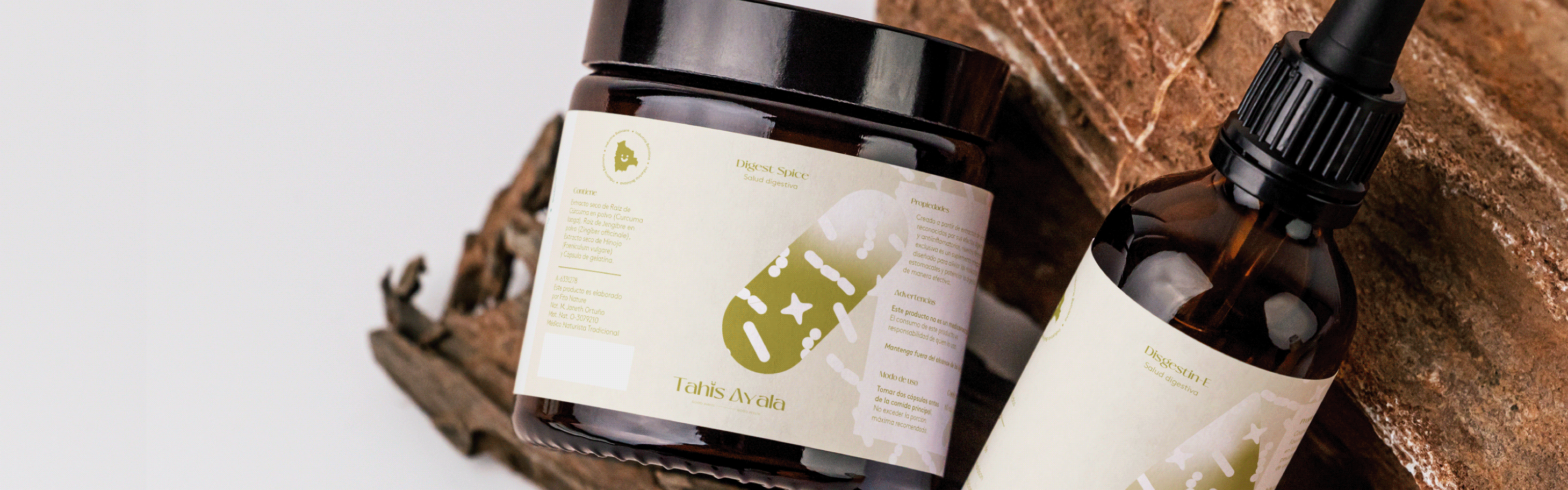 Packaging pour une nutritionniste indépendante, experte en microbiote. Marketing et packaging de ses compléments alimentaires.